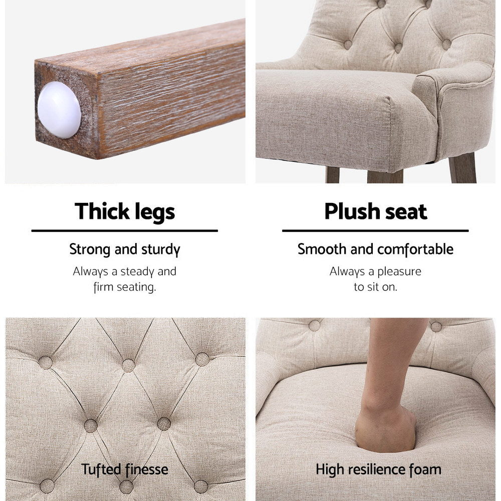 Transform your home with French Provincial charm with our timeless Cayes Dining Chair. Oozing myriads of class and sophistication, the Cayes Dining Chair is upholstered in quality amber taupe linen over deep 13cm high resilience foam and set over a rubber wood frame.