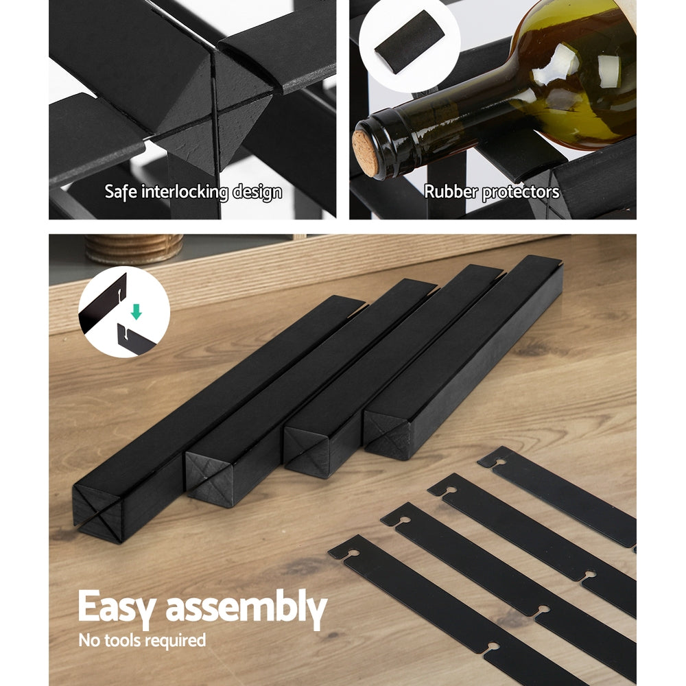 Store or display your wines in style with our Artiss Wine Rack. No need to have them scattered around in a cupboard, as this wine rack can hold up to 72 bottles in a tidy structure. Made of quality pine wood and heavy-duty steel, the rack is made to last and will make sure your wines are in good hands. And on top of providing stable storage, it is also a great showcase for your treasured wines. Easy to assemble with a safe interlocking design, it will not take long before you can show them off to your friends and family. Use it at home, in your private wine cellar or in restaurants and cafes to make a statement about your fine wines. For the wine connoisseur in you, nothing looks quite as stunning and beautiful as showcasing your vintages in our exquisite wine rack.