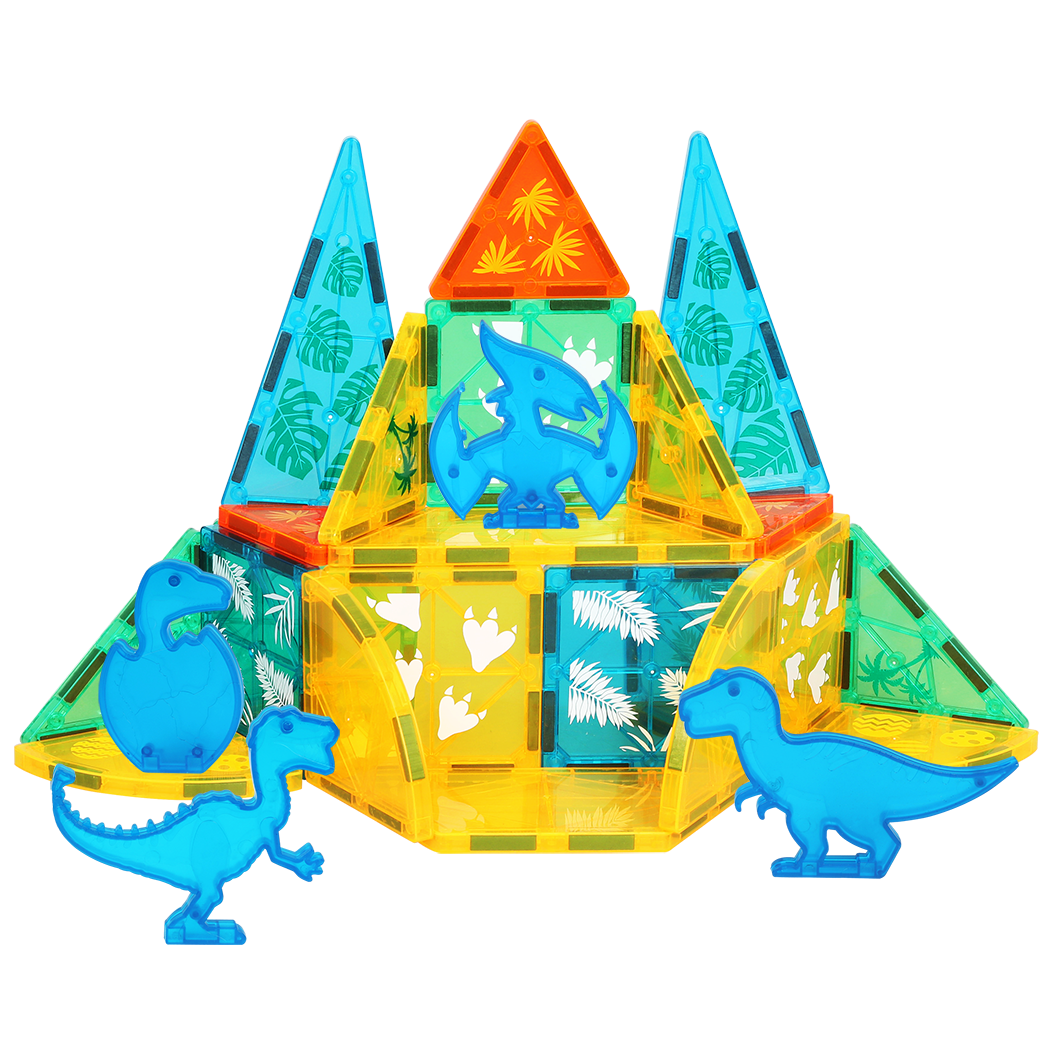 Unleash your kids' creativity with dinosaur-themed magnetic building blocks, allowing them to construct towering volcanoes, vibrant jungles, and amazing dinosaur habitats. The possibilities are endless, enabling them to design their own prehistoric world right at home.