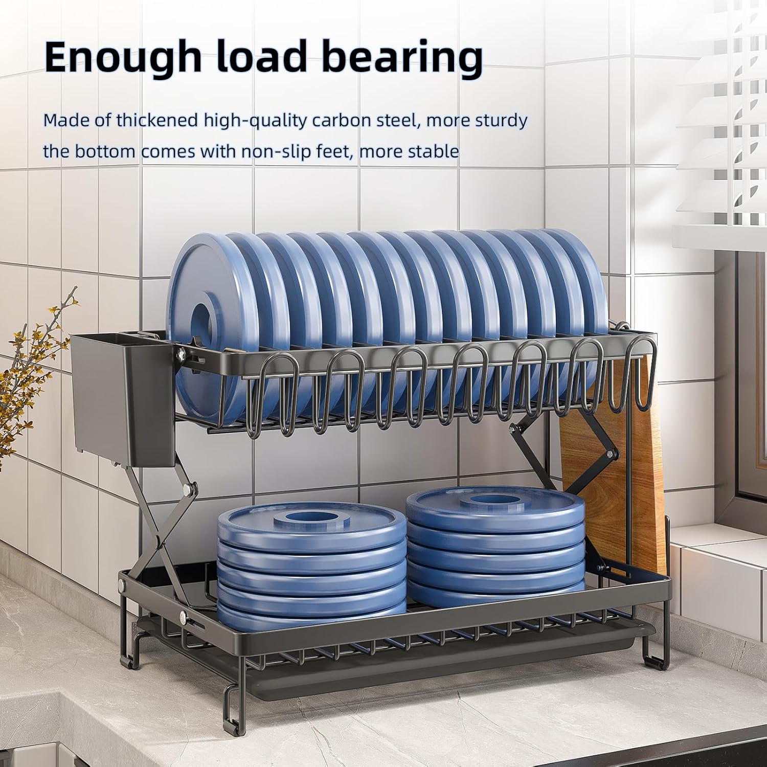 - 2-TIER LARGE CAPACITY DESIGN: Maximize your countertop space with a double-layer structure that holds up to 13 plates on the top rack and 22 bowls on the lower tier. Additional zones accommodate cups, utensils, and cutting boards � perfect for compact kitchens.
