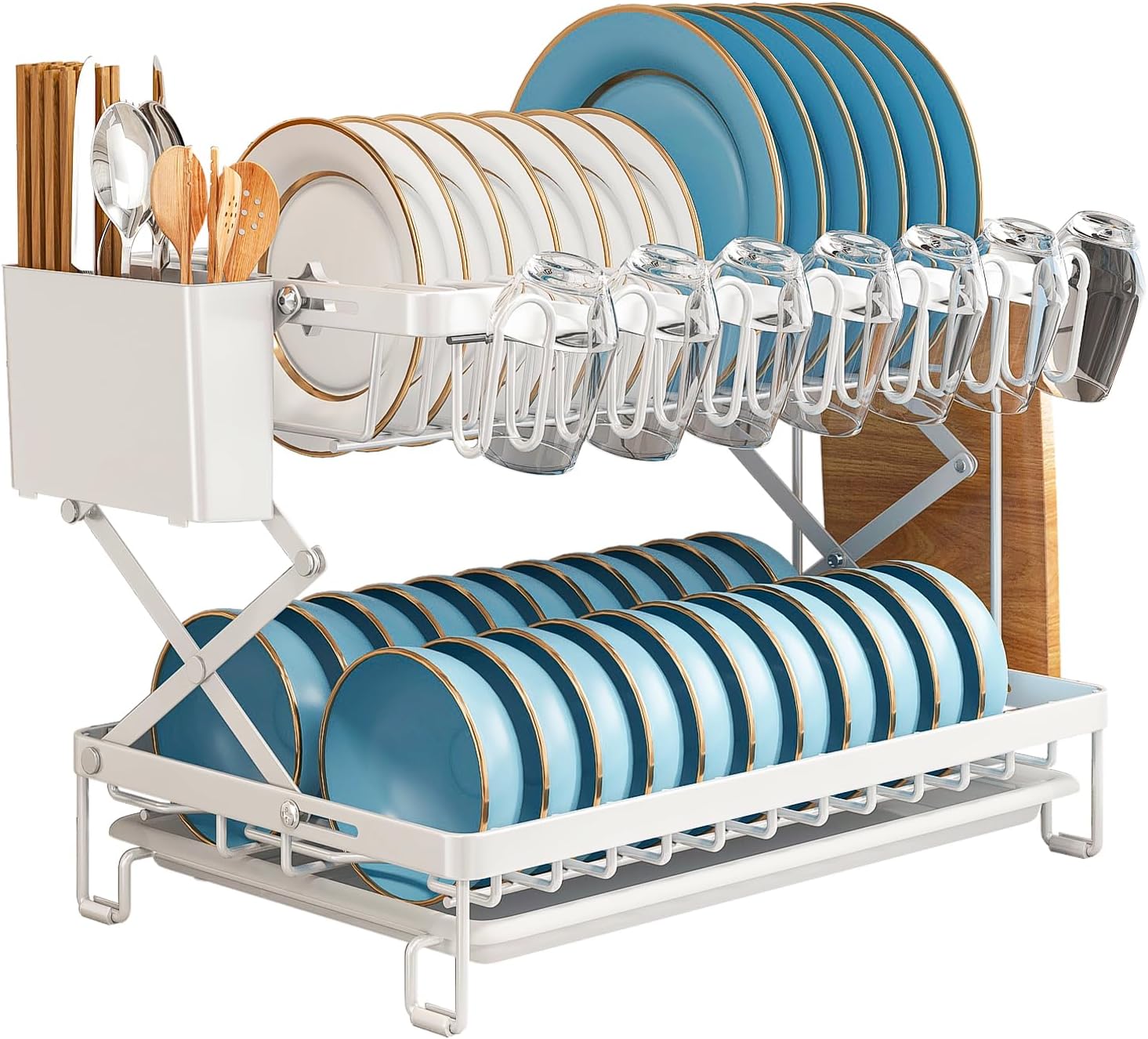 - 2-TIER LARGE CAPACITY DESIGN: Maximize your countertop space with a double-layer structure that holds up to 13 plates on the top rack and 22 bowls on the lower tier. Additional zones accommodate cups, utensils, and cutting boards � perfect for compact kitchens.