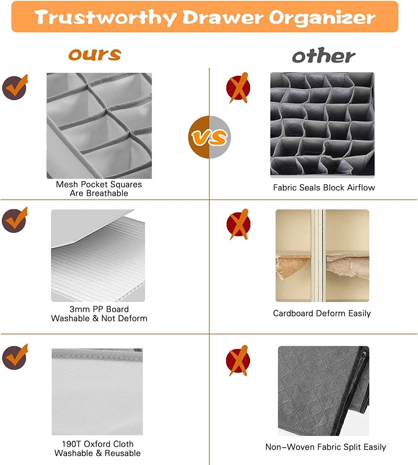 - SPACE SAVER: the organiser is perfect to save space for your closet, drawer, wardrobe and cabinet, it massively improve the utilisation of your drawer space. Indeed, it will be easier to find exactly the piece you are looking for, saves much time on picking your items!
