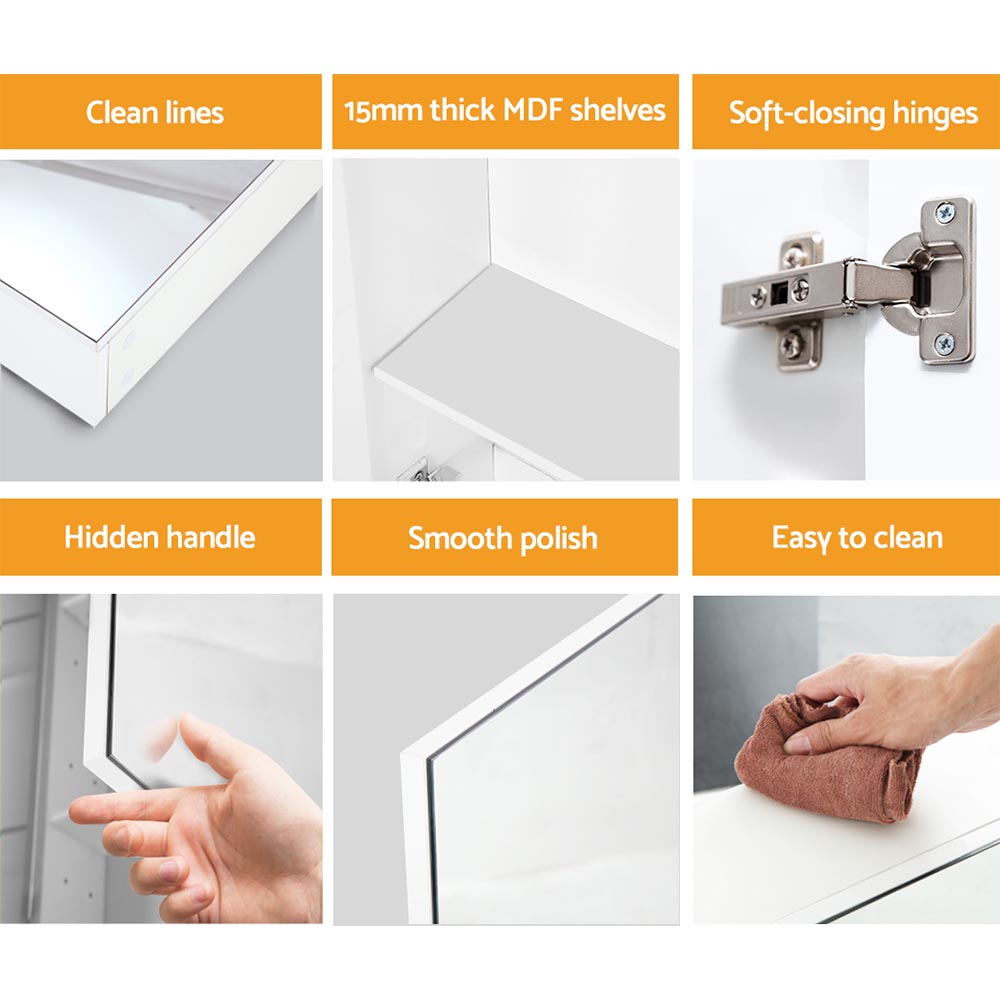 Finished in high gloss PU and made of quality 15mm MDF material, our Storage Mirror Cabinet is designed to be longlasting and durable with a touch of class. The three soft-closing doors open to lots of storage space within the cabinet with adjustable shelves to suit your various storage requirements for toiletries, medicine and other bathroom essentials. Not least, the pencil-edge handles make this Storage Cabinet uniquely stylish whilst the crystal-clear mirrors reflect wide coverage with absolute clarity