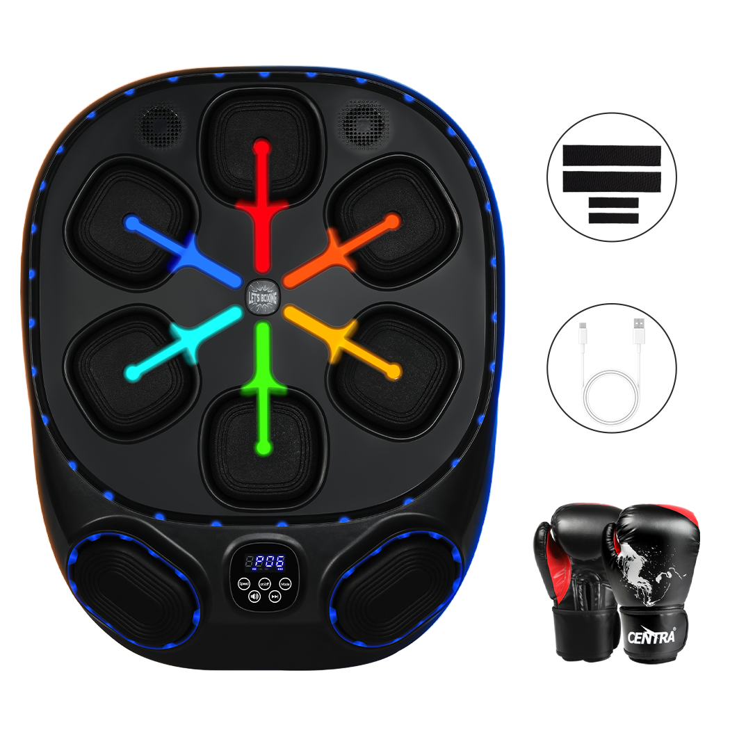 Get a dynamic workout at home with the smart music boxing machine, designed for all ages and fitness levels. Featuring 10 adjustable speeds and 9 flash modes, you can easily customize your workout from a gentle warm-up to an intense boxing session. The expanded punching area includes 6 primary surfaces and 2 unlockable zones, offering more punch angles for a versatile training experience. The soft, large hitting area ensures safety by protecting your hands and wrists, even during off-target punches. Stay motivated with Bluetooth connectivity, allowing you to play your favorite music while tracking your progress. Installation is a breeze with two mounting options—hook-and-loop fastener or wall mount. Perfect for use in any room, whether in the living room, bedroom, or office, this boxing machine is a great way to relieve stress and stay active without the need for a gym. Ideal gift for anyone looking to have fun and stay fit at home!