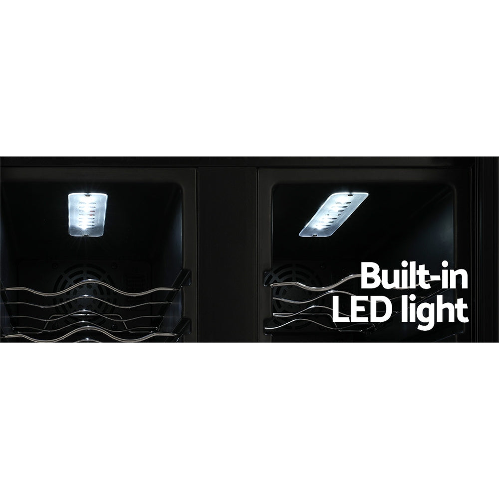 Need a reliable way to store your wine collection? Look no further than our Devanti Wine Cooler. Utilising the latest high-precision compressor cooling technology, our wine cooler ensures your favourite vintages are well kept at their recommended temperatures with its circulated cool air. The cooler has a dual zone system with two separate temperature-controlled zones, ensuring perfect cooling temperatures for both white and red wines. The temperature can be set between 5°C and 13°C for the upper zone (which is suitable for dry white and sparkling wines), and between 12°C and 18°C for the lower zone (which is suitable for red wines). The digital control panel makes for easy temperature adjustments while the built-in LED lights help you to see your wines in the best light. The stylish design stores up to 24 bottles of wine in a neat and tidy chrome shelving system. Better still, the double-glazed glass door is UV-resistant and provides excellent insulation. The ensemble works quietly and efficiently and has a built-in lock for total peace of mind. Suitable for both home and commercial use. Treat your vintage collection with the care it deserves - invest in a Devanti Wine Cooler today.
