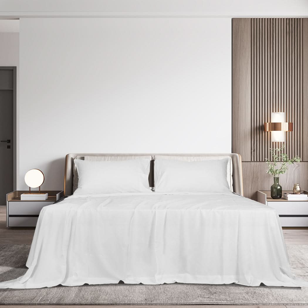 DESCRIPTIONEnjoy a restful night's sleep on new bamboo sheets. Open up the packet. Elastic edges make it simple to achieve an unwrinkled bottom sheet. Lay out the flat sheet and tuck it in. Add your duvet on top. Insert pillows into your new pillowcases. Voila!