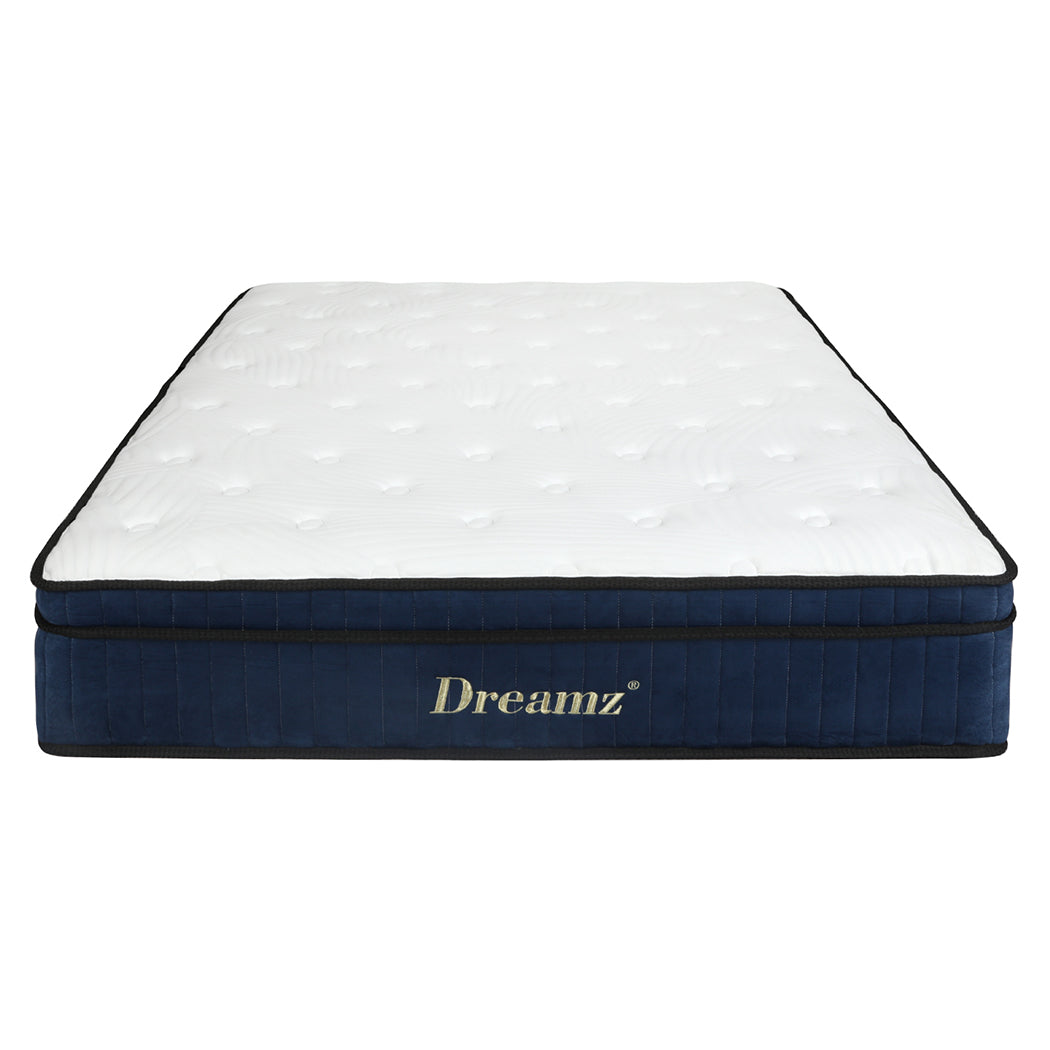 Crafted with a 34cm profile, the Dreamz mattress features gel memory foam, wave foam and a pocket spring base to form a supportive mattress system that minimises motion transfer and enhances sleep quality. Its hypoallergenic materials, knitted fabric top and airflow-boosting layers work together to maintain a cool, breathable mattress surface throughout the night.