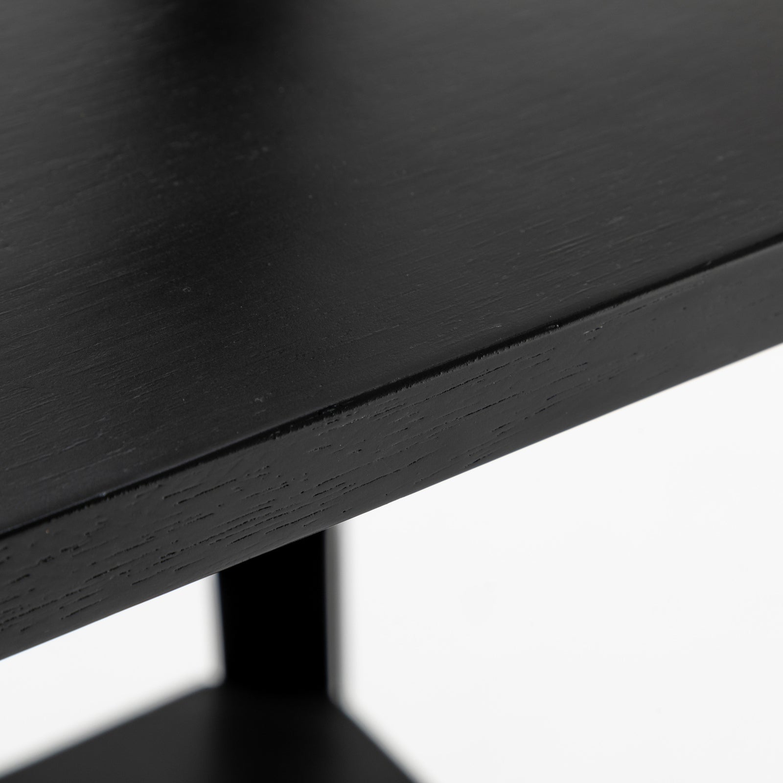 Eiffel 3 Tier Natural Wood Floor Lamp w/ Storage Shelves + Off White Linen Shade