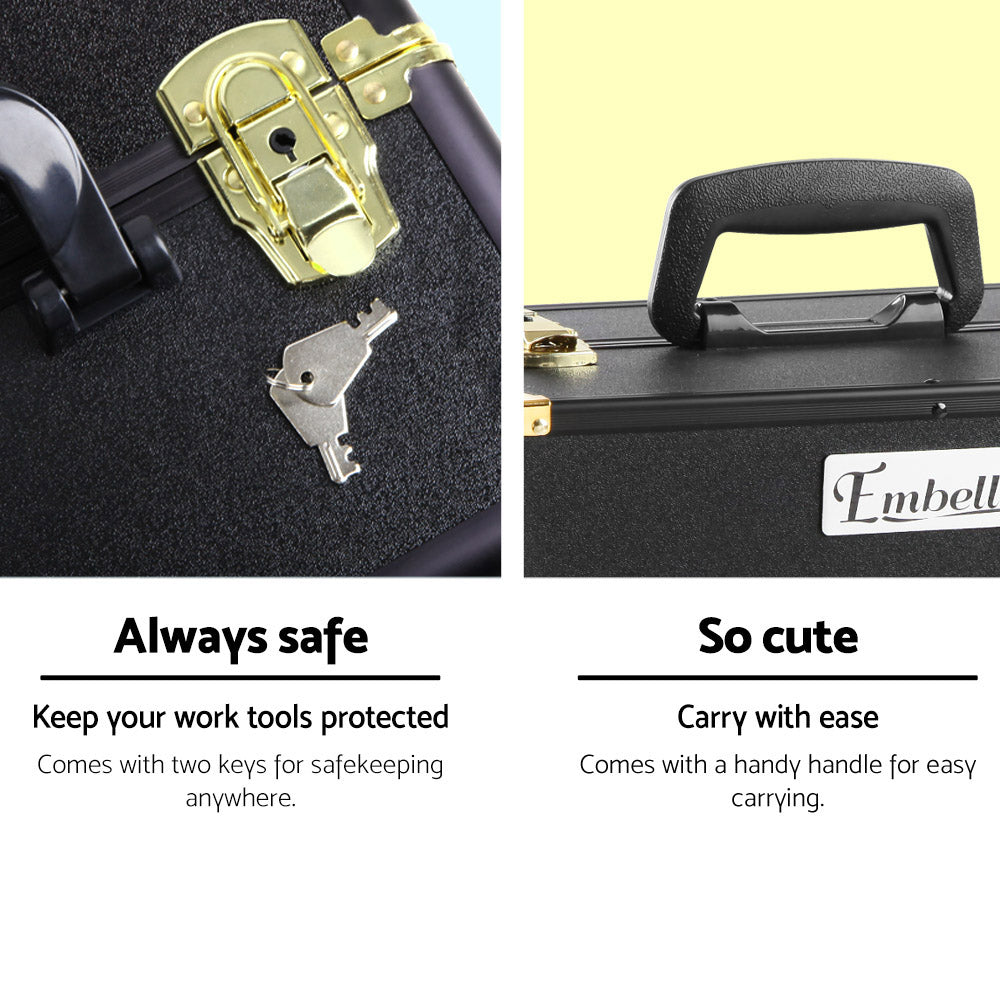 Portable Beauty Makeup Case Diamond Black Gold