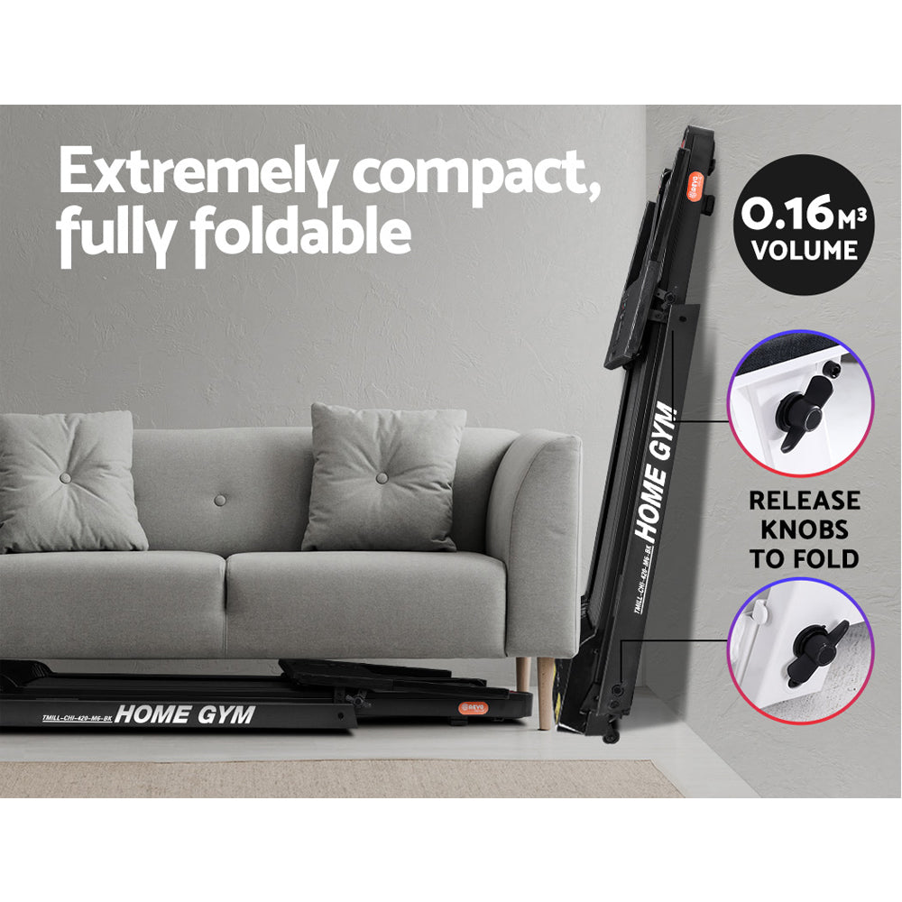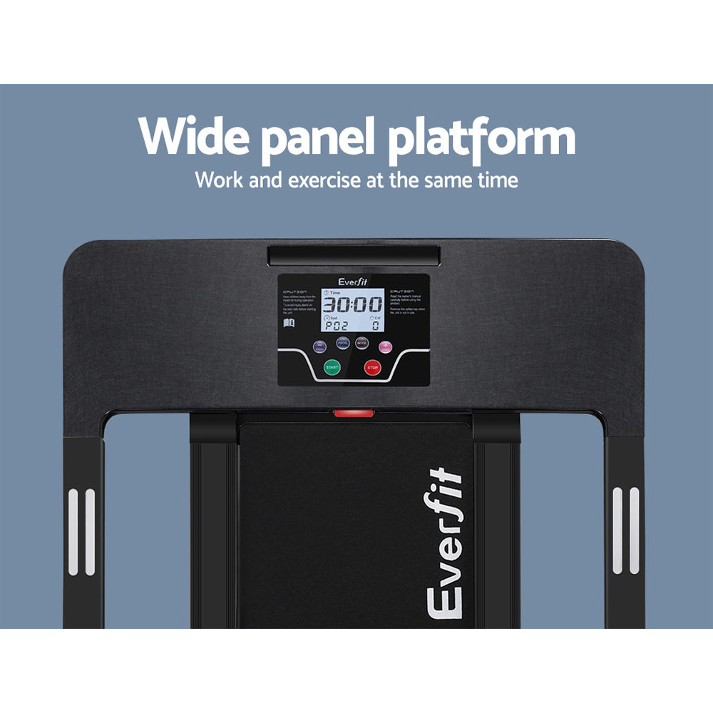 For a truly effective approach to weight loss and toning, our Everfit Fitness Treadmill is your perfect companion. Compact and sturdy with its powder-coated steel frame, the treadmill allows you to perform essential cardio exercises within the comfort of your home. In fact, a workout on this treadmill is akin to running or brisk walking for 3 km every day. The treadmill features 12 pre-set training programs designed to simulate natural terrain. A user-centric control panel with a digital LCD display lets you set up speeds of between 1km/h and 12km/h and monitor other parameters. Its powerful and energy-efficient motor produces smooth and seamless operation and the anti-slip belt and soft-grip handlebar make your session a comfortable and controlled experience. And when all the hard work is done, fold and store away the compact treadmill away easily. Other great features include safety tether key, smooth wheels for easy mobility. For health results that matter, our fitness treadmill is the one to run to.