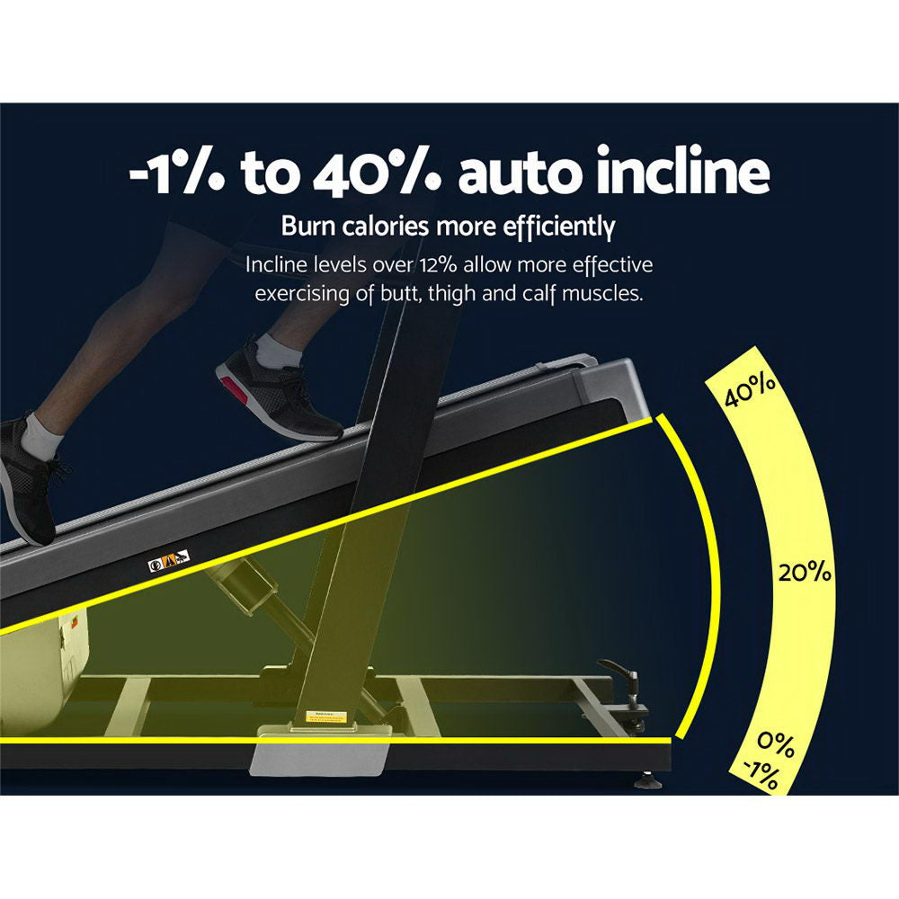 Want a more varied workout? Something that is easy on your joints yet efficient? Well, our Everfit Electric Incline Trainer Treadmill certainly fits the bill. Sturdy with its powder-coated steel frame, the incline trainer allows you to perform essential cardio exercises within the comfort of your home. It has all the features of traditional treadmills, but what sets it apart is the higher incline levels. With auto incline between -1% and 40%, you can simulate climbing and hiking outdoors to maximise your exercise efficiency. Walking at a high incline at lower speeds burns just as many calories as jogging or running on a level surface, yet is much easier on your joints with lower impact.