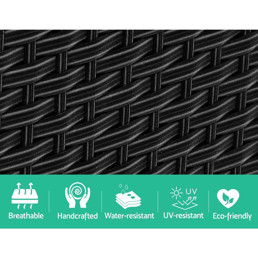 With its cool modern vibes, our wonderful Gardeon Tete-a-tete Set is just perfect to spend the day with your bestie. Equally stylish and appealing when used indoors or outdoors, our wicker set is designed to please and create a sense of exotic chic. With two integrated armchairs and an adjoining table, the ensemble features a strong inherent structure with ample weight capacities for armchairs and table. The UV-resistant and weather-resistant PE wicker is meticulously weaved to bring out the exceptional workmanship and the chairs exude luxurious comfort with high-density foam cushions. Better still, the table features a double-deck design for extra storage space with a 5mm thick tempered glass tabletop for a sleek look and easy maintenance. Not least, the powder-coated steel frame ensures that corrosion and rust are never an issue with this elegant set.