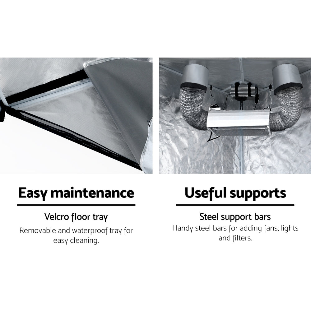 Whether you're a budding novice or a seasoned green thumb, our Greenfingers hydroponics grow tent is perfect for you. Lightweight and portable, our grow tent is equipped with all the necessary essentials to facilitate the healthy growth of your plants and vegetables. Made from 600D oxford and double-layer strong corners, the grow tent is built to last. Includes fittings and space for various sized fans, lights and filters, a spacious interior and a sturdy, power-coated steel frame for ongoing use in typical Australian climatic conditions. The interior is easy accessible through the zippered U-shaped observation window, while vent ports make climate control a breeze. Easy to assemble or take down, our grow tent makes growing your greens easy with the perfect light, temperature and air conditions, both in season and out of season.
