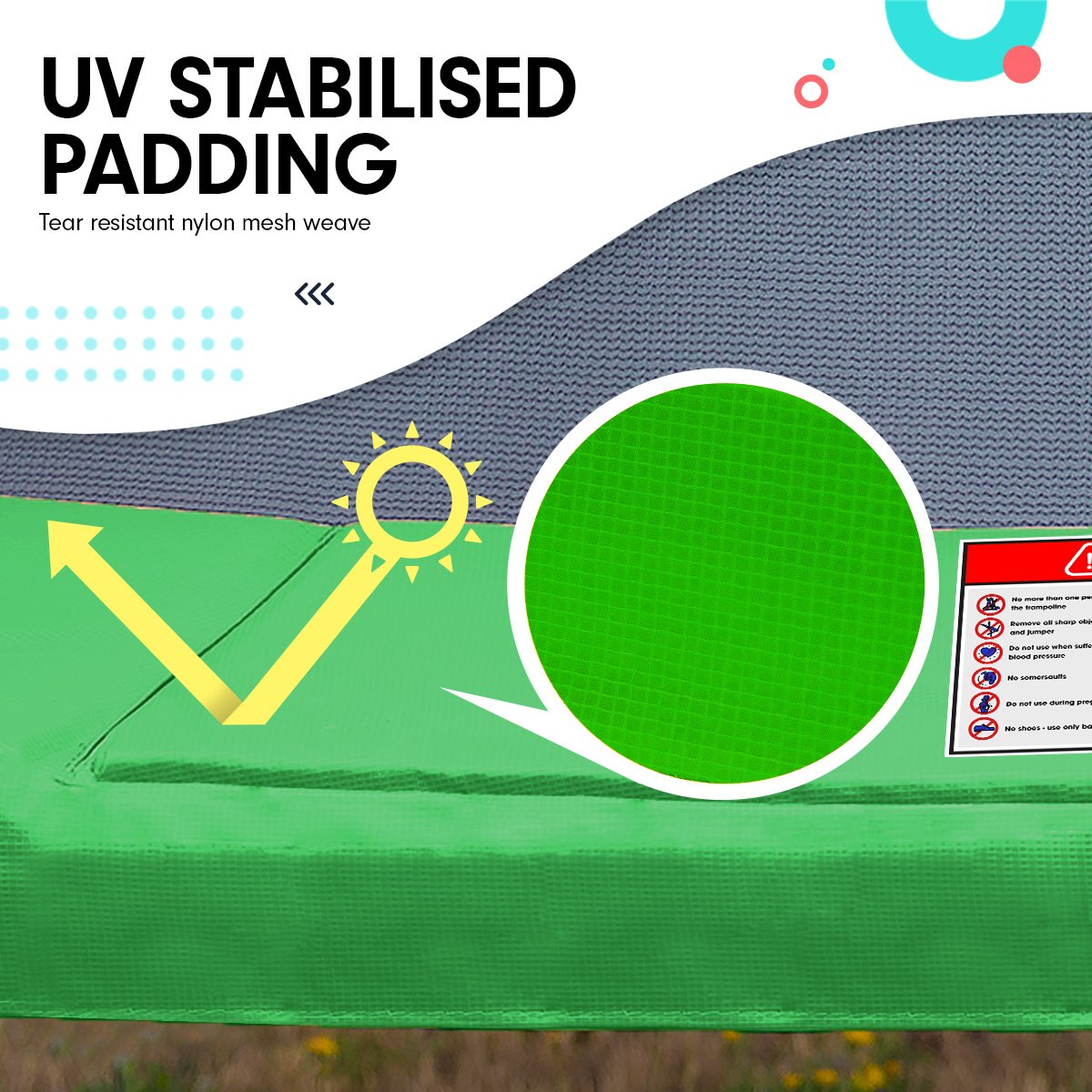 - UV-stabilised & mesh-reinforced safety padding