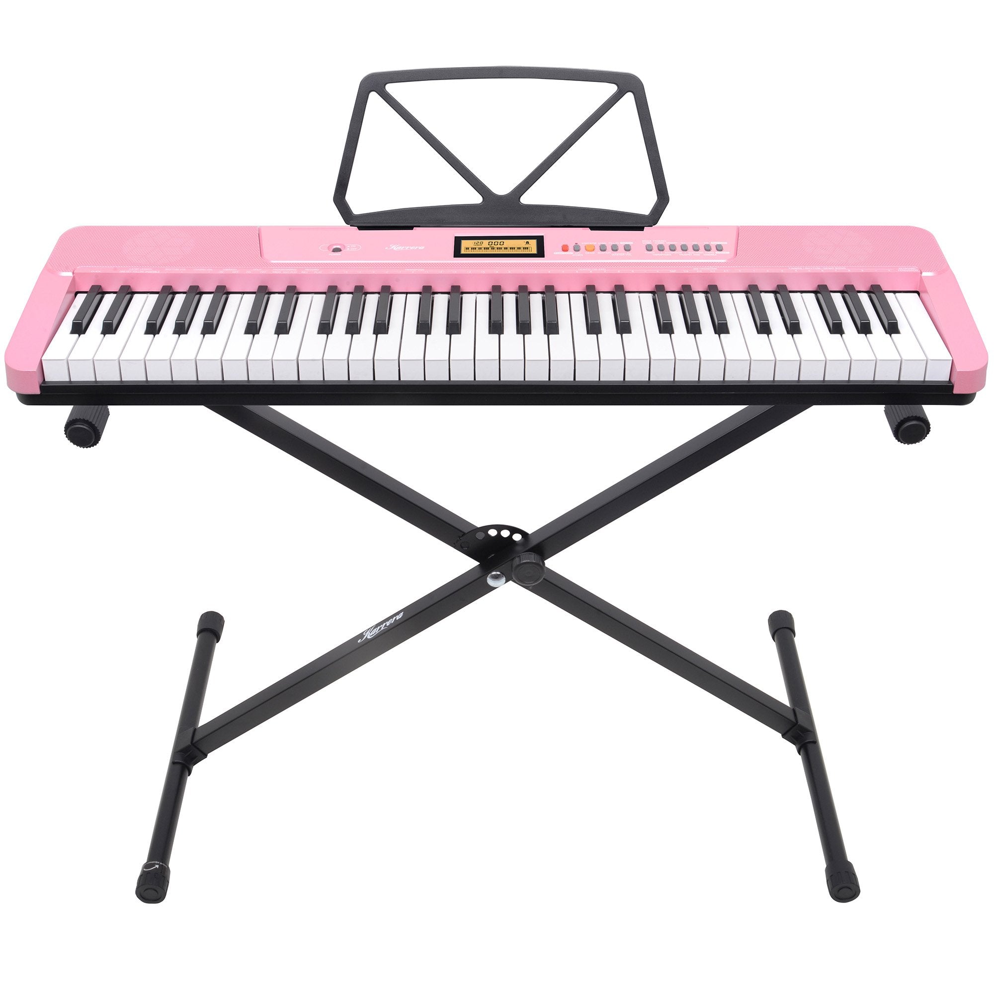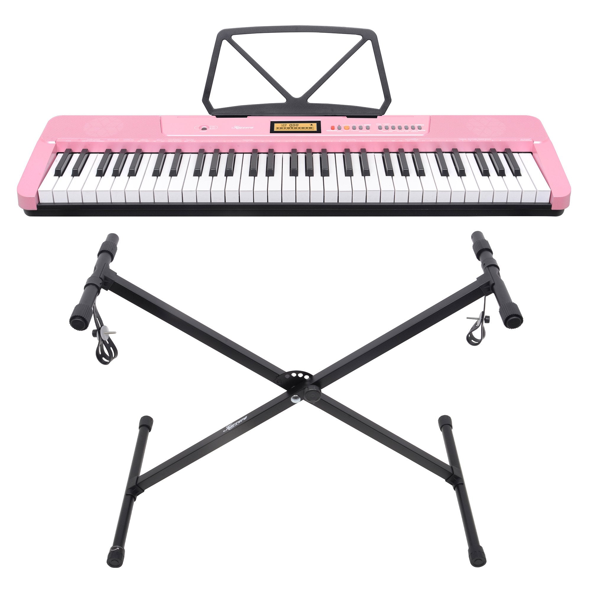 Unlock our musical talent with this immersive Karrera electronic keyboard! An excellent option for both beginners and experienced players, its touch-sensitive keys allow for personal expression, while the LCD display simplifies the navigation. It also comes with an adjustable stand featuring a safety lock pin for secure and stable height adjustment.