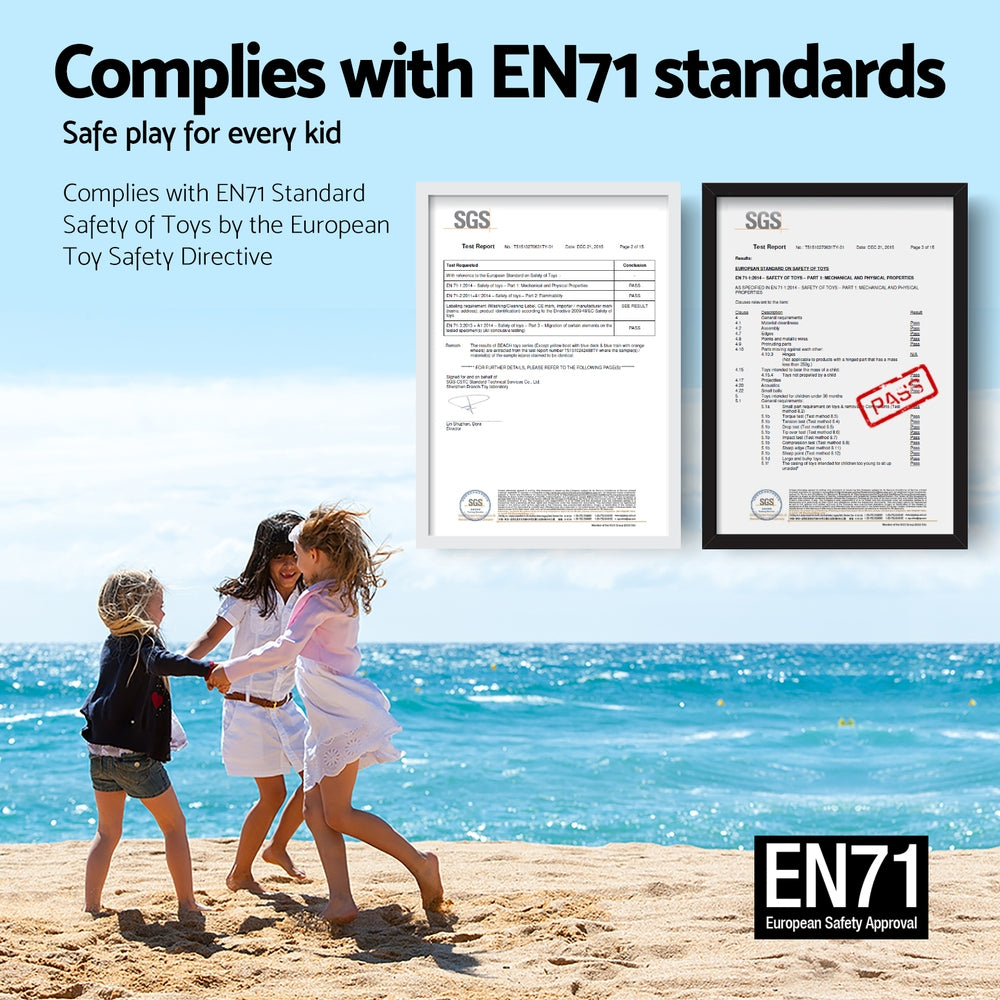 If your kids love getting creative, you'll love the Keezi Kids Activity Table and Chair Set. It may look like a simple setup, but with a powder-coated steel frame and high-quality HDPE plastic exterior, the set is built for heavy-duty, long-lasting use. The set is coated with rust-resistant paint, features upgraded rounded corners for safety and comes with 8 chairs for the perfect play date. The table has a 100kg weight capacity to hold everything your child needs, and each chair has a weight capacity of 50kg. Adjustable feet ensure the table is always the perfect height for your children to play, draw, read, write or craft. You can easily use the set indoors or outdoors – whatever the day requires. The chairs feature a stackable design so you can easily store them away at the end of the day. Best of all, the set is EN71 European Safety of Toys certified, so you can rest assured you made the right choice for your children. No matter the activity, the Keezi Kids Activity Table and Chair Set are ready for action.