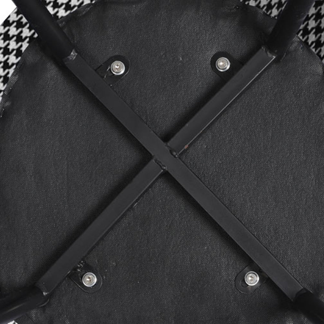 The outer layer of the chair is made of premium quality houndstooth fabric. The entire frame is built with extra sturdy steel. Heavy-duty backrest provides extra stability and steadiness all the time. Highly comfortable to sit on with its 3cm densely stuffed foam, instantly feel the comfort as you take the seat. Equipped with steel legs for added stability. Very easy to clean and maintain. Suitable for meeting rooms, tea rooms, and restaurants.