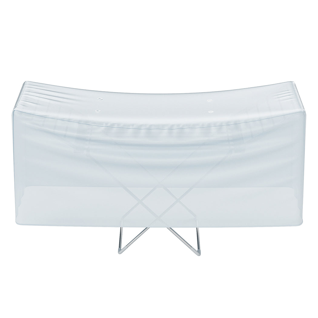 The dimensions of the clothes drying rack are 147cm (L) x 54cm (W) x 94cm (H), and the cover's dimensions are 147cm (L) x 54cm (W) x 74cm (H). When not in use, it can be folded up, significantly saving space in your living area.