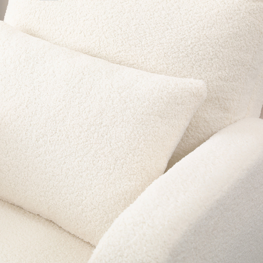 Description This rocking chair and ottoman set is thoughtfully designed for ultimate relaxation and versatility, making it ideal for both nurseries and living spaces. Upholstered in soft teddy bear plush fabric and filled with high-density foam, the chair provides outstanding comfort and lasting resilience. The ergonomic design, featuring a high backrest and wide armrests, offers excellent body support, making it perfect for adults seeking a cozy spot to unwind.