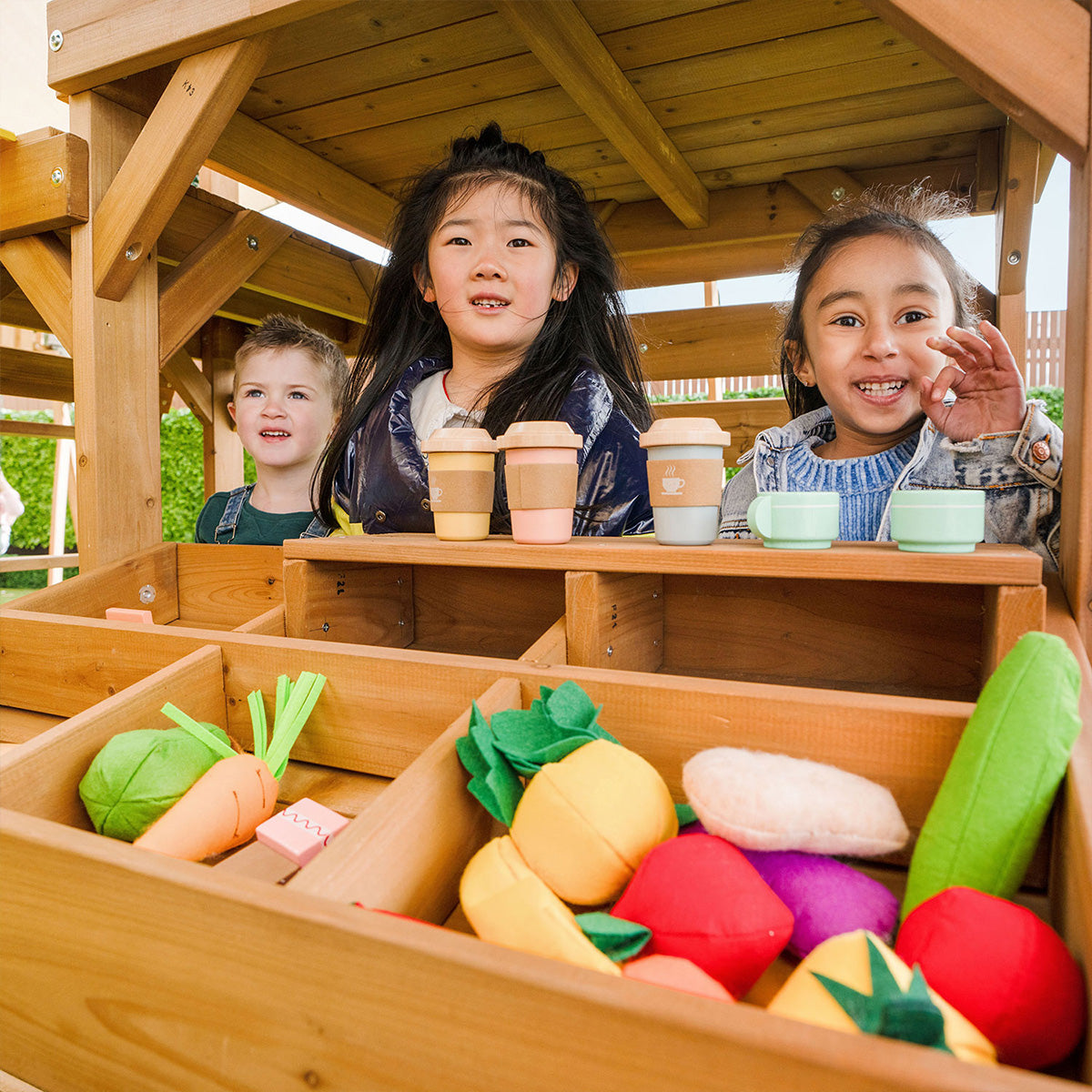 • Hideaway area with pretend shop front and shade canopy