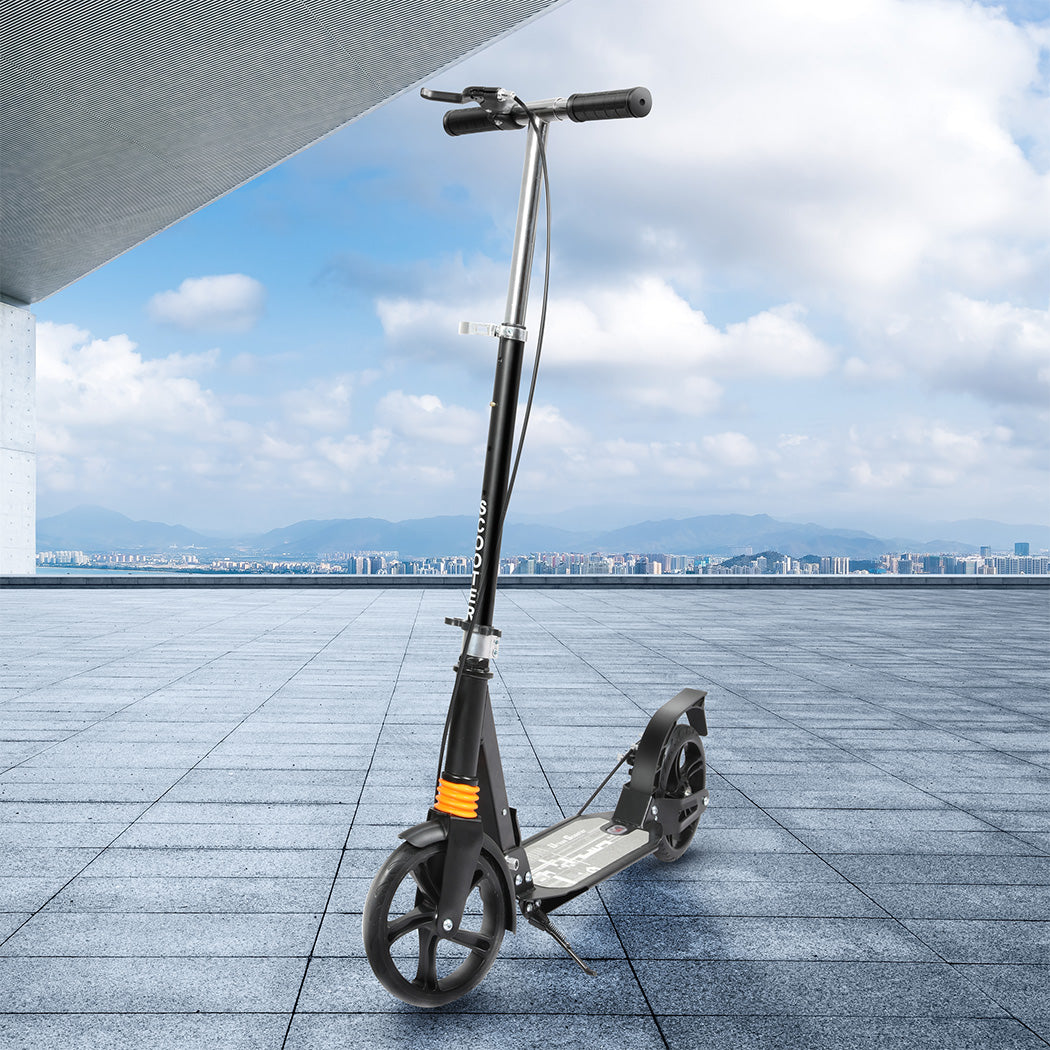 Convenience is also a key factor in our scooter's design. The handlebars feature a one-click folding mechanism, allowing you to quickly fold the scooter for easy storage. Whether you're commuting or heading to the park, this compact and lightweight scooter fits into the smallest spaces.