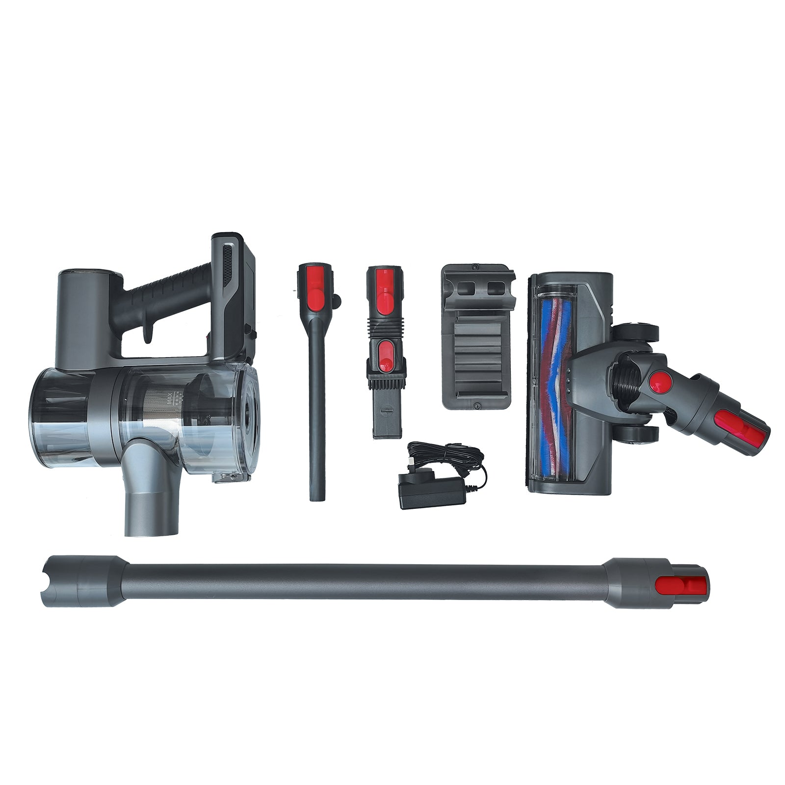 - Vacuum heads: Standard brush head/ 2-in-1 flat brush / long flat crevice nozzle accessory