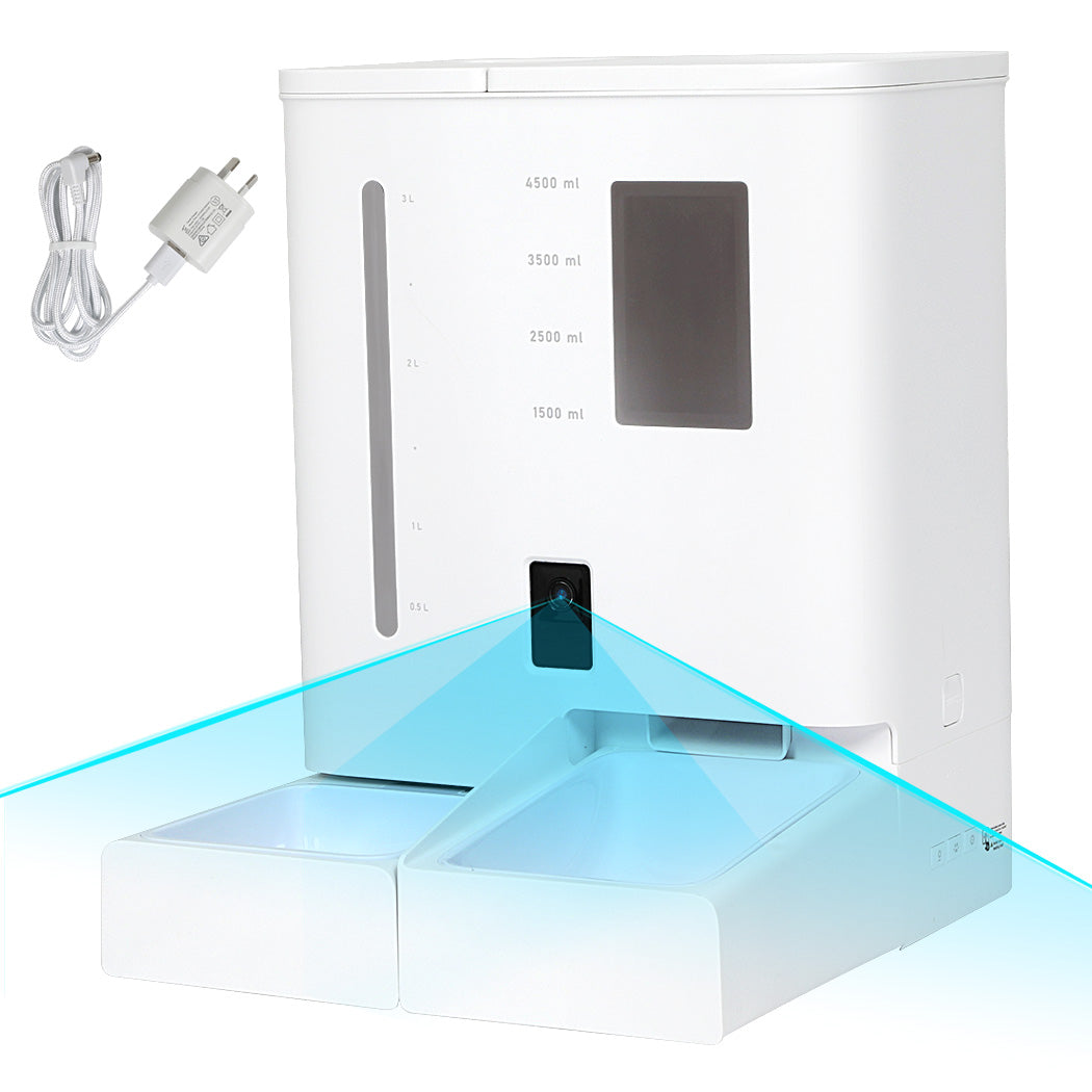 The Pawz 2-in-1 Automatic Pet Feeder & Waterer is the ultimate solution for modern pet care, combining convenience, innovation, and reliability to simplify your daily routine. With its dual design, it features a 4L food storage compartment and a 5L water tank, ensuring your pets stay well-fed and hydrated at all times. Equipped with remote WiFi app control, you can easily manage feeding schedules from anywhere using the free app, compatible with both iPhone and Android smartphones. The flexible feeding function allows you to customize portion sizes and meal times to suit your pet's unique needs, while the 10-second audio recording feature lets you call your pets with a personalized message.