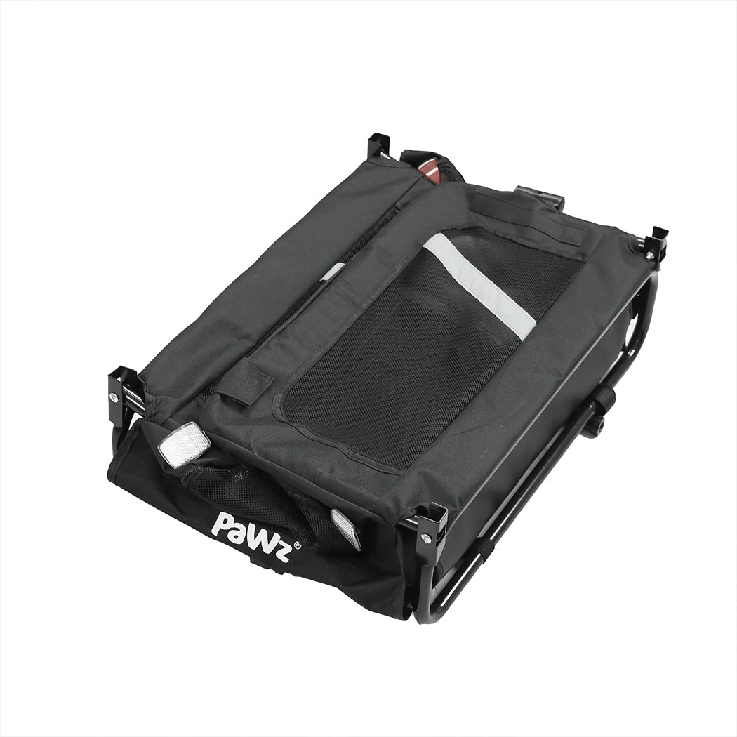 DESCRIPTIONRoll on with your furry friend zipped up in their dog bike trailer. Ride around the lake while your puppy takes in the surrounds. You get your exercise. Your dog gets new experiences. And no muddy dog too.