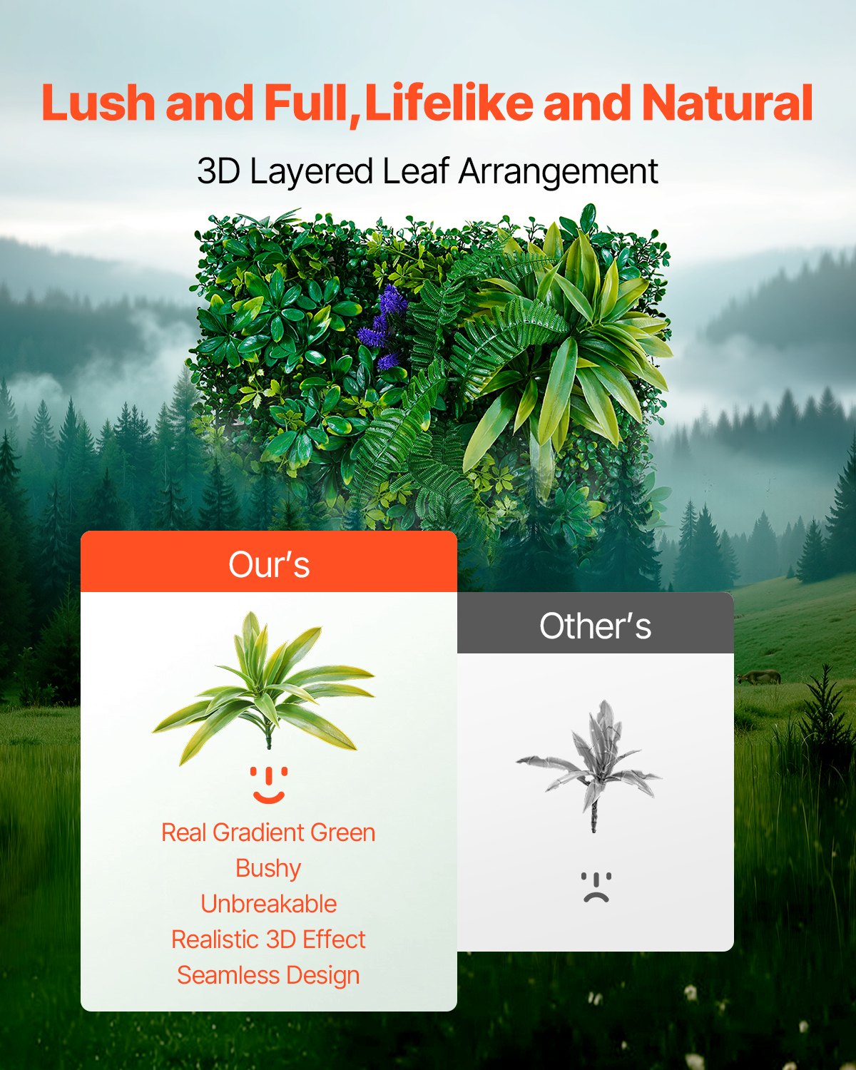 Featuring a four-layer backing and leaf heights ranging from 1.8 to 3.54 inches, the dense, layered design ensures no gaps, creating a natural and seamless look. Once installed, it provides excellent coverage for enhanced privacy