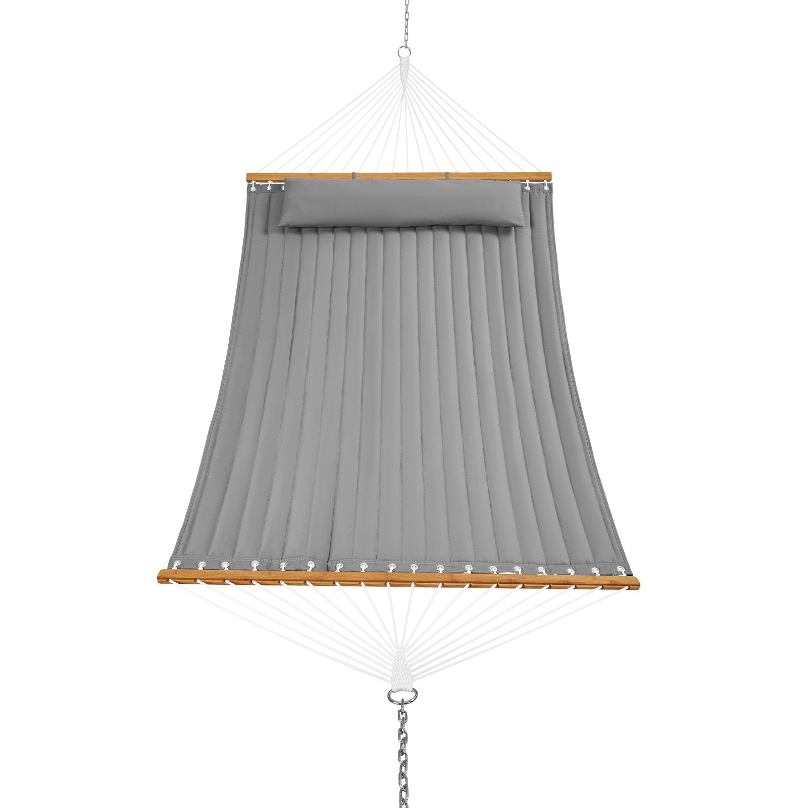 Our double quilted hammock with spreader bars offers a variety of colors and styles, making it perfect for your backyard, garden, patio, poolside, and more. Effortlessly set up and pack away, use it with trees or a hammock stand, and turn your place into a delightful retreat.