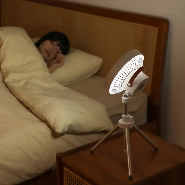 White Portable Outdoor Tripod Fan – USB Rechargeable Camping Fan with Remote Control, Folding & Adjustable for Outdoor Activities and Travel