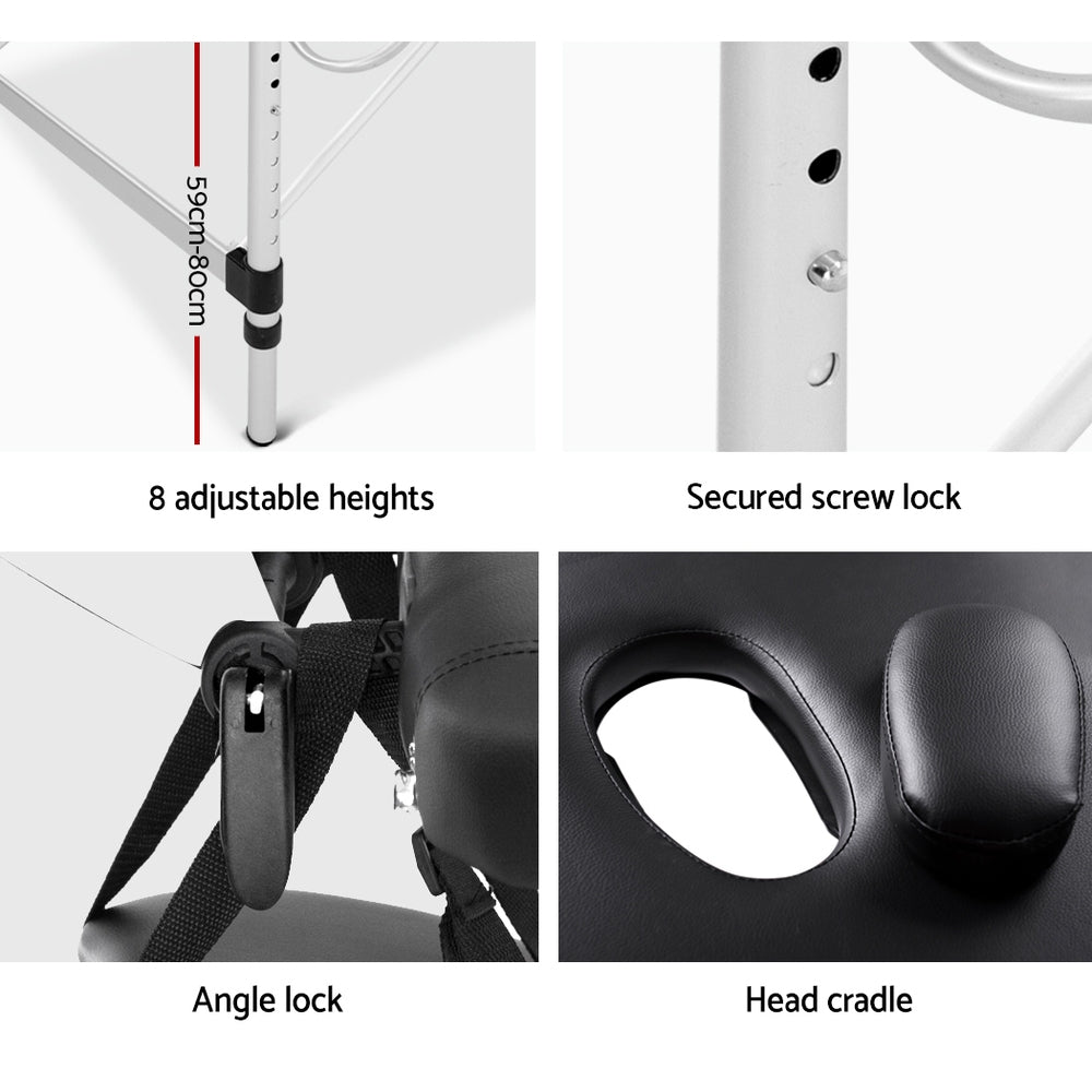 80cm Professional Aluminium Portable Massage Table - Black